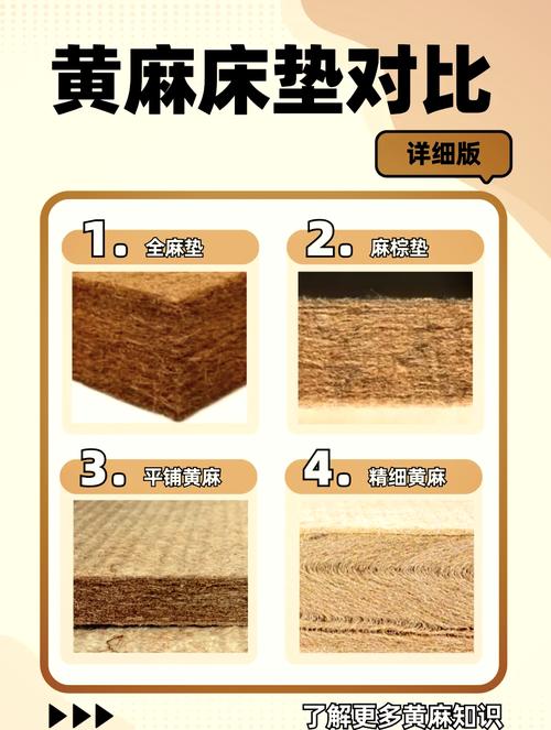 〖Three〗、黄麻床垫优于山棕床垫。黄麻床垫的优点: 天然环保:黄麻床垫采用天然黄麻纤维制成,不含有害物质,对人体健康无害。 透气性好:黄麻纤维具有良好的通风性能,有助于减少汗渍积聚,保持床垫干燥。 抗菌防螨:黄麻具有天然的抗菌和防螨特性,有助于维护床垫的清洁和卫生。