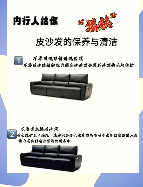 〖Four〗、清洗方法:- 新沙发预处理:新买的皮沙发在使用前,应用软布在温水中浸湿后擦拭沙发表面,再用干布吸干水珠,并涂抹一层保养剂。- 日常灰尘清理:日常保养时,先用干软布擦去沙发上的灰尘,再用温湿软布轻轻擦拭,注意力度不要过大,最后用干布吸干水珠。