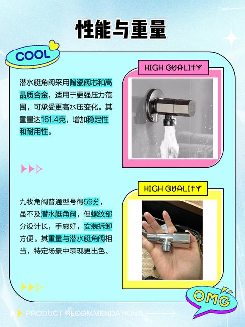 〖Three〗、总体而言,若注重专业性、工艺细节,潜水艇角阀是不错之选;若看重品牌影响力、多样款式及完善售后,九牧角阀更值得考虑。