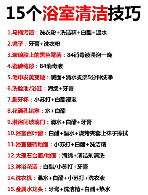 浴室柜面盆清洁技巧: 使用家用清洁剂进行日常清洁。 可以先用肥皂加入少量氨水,或者使用等量的亚麻籽和松节油混合物,这些方法去污能力强,且能让陶瓷盆恢复光泽。 若不慎有强烈污渍,应立即擦洗。