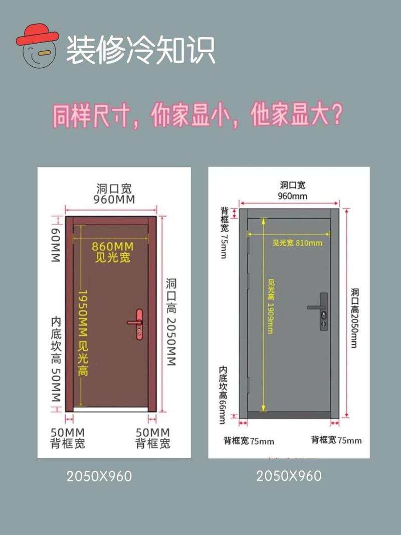 〖Five〗、防盗门标准门的尺寸一般是高度在2050mm左右,宽度则为960mm左右。不过,这只是一个常见的标准尺寸,实际尺寸可能会受到以下因素的影响而有所变化: 不同的需求:防盗门的主要功能是提供安全保障,防止未经授权的进入。因此,其尺寸和结构必须足够坚固,以抵御各种外部威胁。同时,也要适应不同家庭的实际需求。