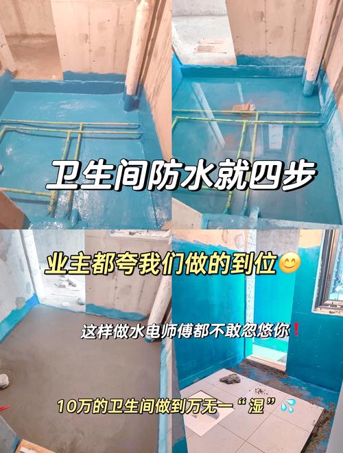 此时,可以移除用于封堵地漏的塑料袋,以便正常排水。若地漏管根较高,可在根部打个小孔,缓慢排水。卫生间防水施工需分两层进行。首次施工时,需确保地面干燥、平整,符合施工标准。随后,调配防水砂浆涂料进行地面与墙面的全面覆盖,尤其注意墙地面接缝及管根部位的涂刷,确保涂料均匀、无遗漏。