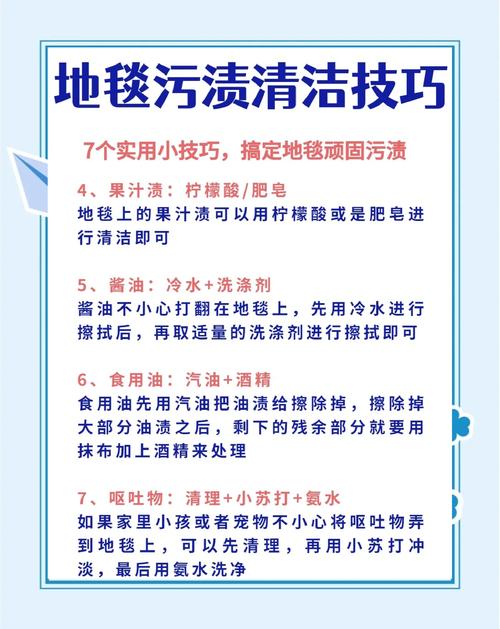 〖Four〗、首先,迅速使用干抹布吸取地毯上的咖啡水分,以减少污渍渗透。随后,取适量白酒,均匀涂抹在污渍区域,等待一段时间后用干毛巾擦拭,直至污渍消失。掌握这些地毯清洁技巧,能有效维护家居环境的整洁与美观。