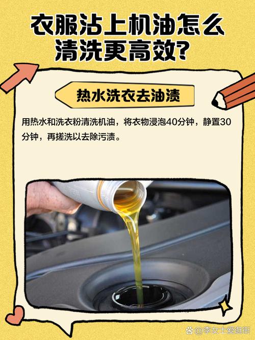 〖Two〗、方法一:使用汽油。汽油能溶解机油,在衣服沾机油处涂抹适量汽油,轻轻揉搓,机油会逐渐溶解在汽油中,之后用清水漂洗,去除汽油和溶解的机油,但要注意汽油易燃,操作时需远离明火。方法二:巧用洗洁精。洗洁精对油污有很好的乳化分解作用。