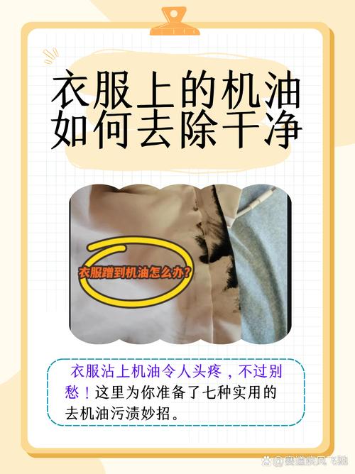〖One〗、衣服上沾了机油,可以尝试以下几种常见方式来消除。 汽油清洗法:汽油能溶解机油。将衣服污染处浸泡在汽油中,轻轻揉搓,使机油充分溶解在汽油里,之后用清水漂洗,去除汽油味和溶解了机油的汽油残留。但要注意操作环境需通风良好,远离明火。 洗洁精去污:洗洁精有很强的去油能力。