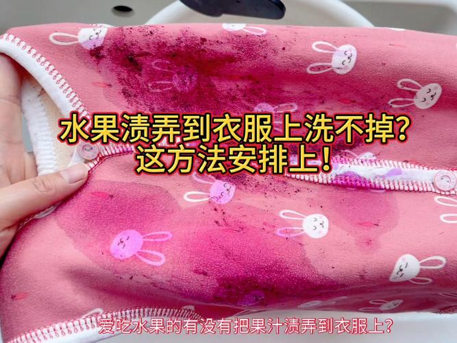 〖One〗、水果汁弄衣服上的清洗方法如下:使用食盐:适用情况:刚沾上的果汁。步骤:将食盐倒在衣服上的果汁处,然后用水轻轻浸润并搓洗,之后用洗衣液清洗并漂净。使用食醋:步骤:将食醋涂在衣服的果汁渍上,用手揉搓一下,放置浸泡5分钟后,放到清水里洗涤。使用小苏打:适用情况:清洗浅色衣物。