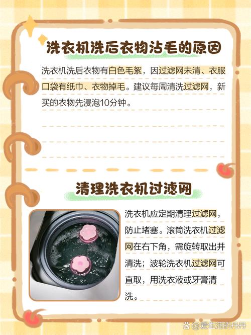 在洗衣过程中,有时会发现衣物上沾满了细小的毛毛,这可能是由于洗衣机长期使用未进行清理,或是衣物材质易掉毛导致的。