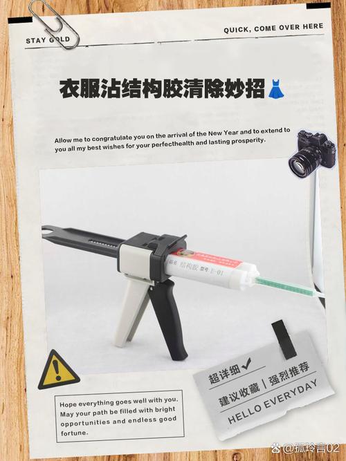 〖One〗、当结构胶不慎沾染到衣物上时,可以采取以下几种方法来去除:使用溶剂清洗、热水浸泡法或风油精去除法。 使用溶剂清洗:溶剂如酒精可以帮助分解结构胶。将溶剂涂抹在沾有结构胶的区域,轻轻揉搓后用清水冲洗干净。 热水浸泡法:将衣物放入温水中浸泡,温度比较好在50到60度之间。热水有助于软化结构胶,使其更容易被清除。