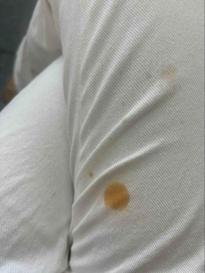 裤子上的油渍祛除,吃烧烤的油不小心滴到了我的米色卫裤上
