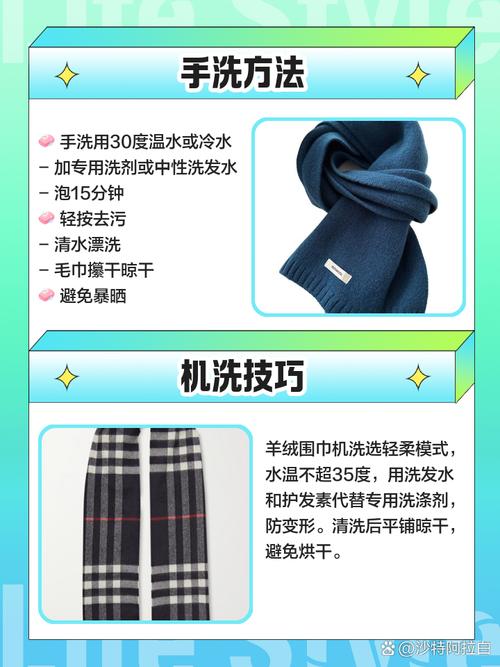 〖Two〗、揭秘羊绒围巾的洗涤秘籍:羊绒围巾,看似娇贵,其实只要护理得当,也能享受水洗的舒适。首先,将围巾放入35℃的温水中,让它沐浴20分钟,温柔地唤醒羊绒纤维。接着,选取专为羊绒设计的温和洗涤剂,轻轻揉搓,切勿用力搓揉,以免损伤纤维。