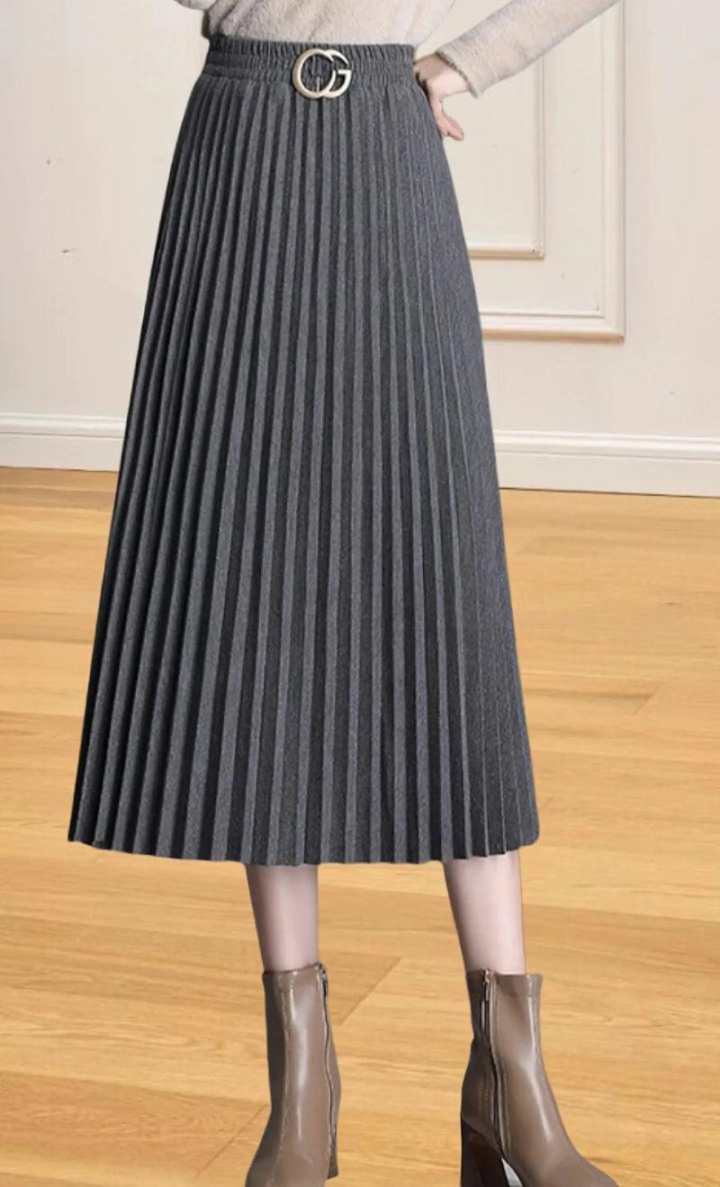 〖Two〗、胯宽适合细百褶裙。**细密的褶皱设计有更好的显瘦效果。对于胯宽且腿粗的姐妹来说,选取褶皱细密的款式会更加合适。然而,褶皱较宽的百褶裙能够更好地突出脚踝的纤细,对于小腿较粗的人来说更为友好。此外,褶皱的高度选取应根据腹部赘肉的多少来决定。