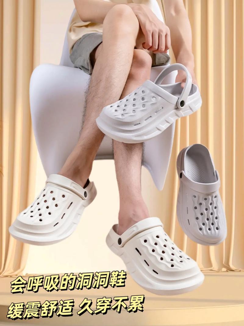 〖Two〗、综上所述,洞洞鞋因其独特的设计,既可以作为凉鞋穿着,也可以灵活调整为拖鞋的穿着方式。