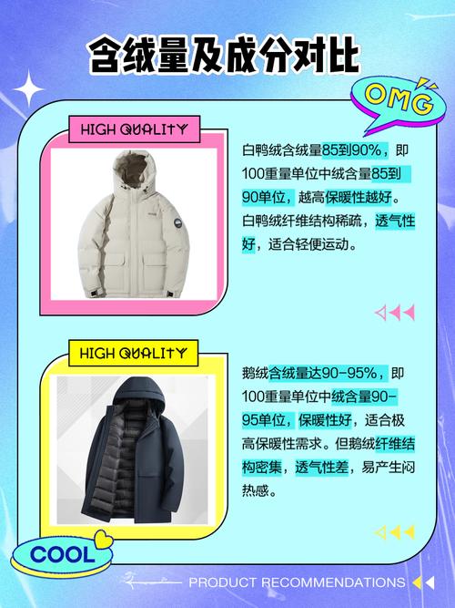 〖One〗、白鹅绒羽绒服相对更好。白鹅绒与白鸭绒相比,具有更高的填充力和蓬松度。这意味着相同重量的白鹅绒可以提供更多的保暖效果,因为它能够固定更多的空气,形成更厚的保暖层。因此,在寒冷的天气里,白鹅绒羽绒服能更好地保持身体的温暖。此外,白鹅绒的质地更为细腻柔软,这使得羽绒服更加轻盈且触感更佳。