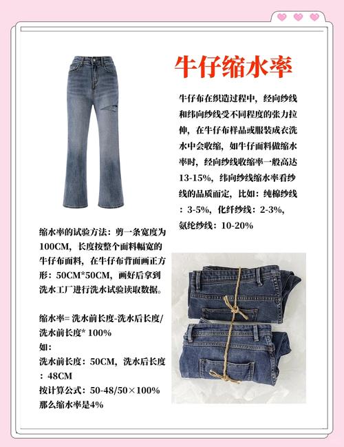 牛仔布料在经过水洗后通常不会出现缩水现象,因为水洗过程会使得牛仔布的棉纤维膨胀,从而使其变得更加宽松。 传统的牛仔布由于未经特殊处理,洗涤后可能会出现缩水,但现代的牛仔裤,特别是那些经过预洗处理的款式,一般不会在洗涤后缩水。