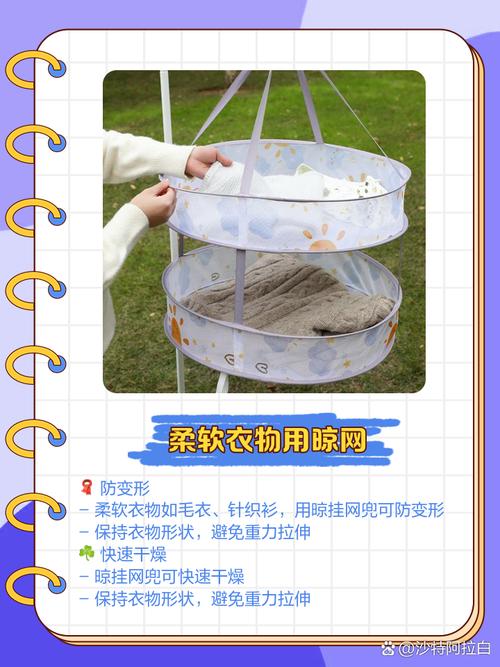 内衣: 倒挂晾晒:使用夹子夹着内衣倒着晾,这样可以避免内衣因重力作用而拉长变形。 中间悬挂:或者从中间悬挂内衣,同样有助于保持内衣的形状。 阳光晾晒:内衣需要在阳光下晾晒,以杀灭细菌。 针织服装: 避免直接悬挂:针织服装如毛衣等容易拉伸变形,不宜直接悬挂在晾衣杆上。