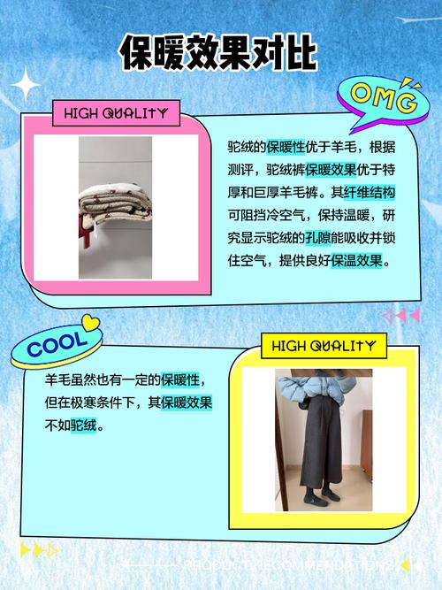 〖One〗、总的来说,驼绒保暖裤和羊毛保暖裤各有优势。如果你更看重保暖性和轻便性,驼绒保暖裤可能更适合你;而如果你更注重柔软舒适和吸湿排汗性能,羊毛保暖裤则可能是更好的选取。在选取时,还可以考虑个人的肤质、过敏史以及对不同材质的适应性等因素。