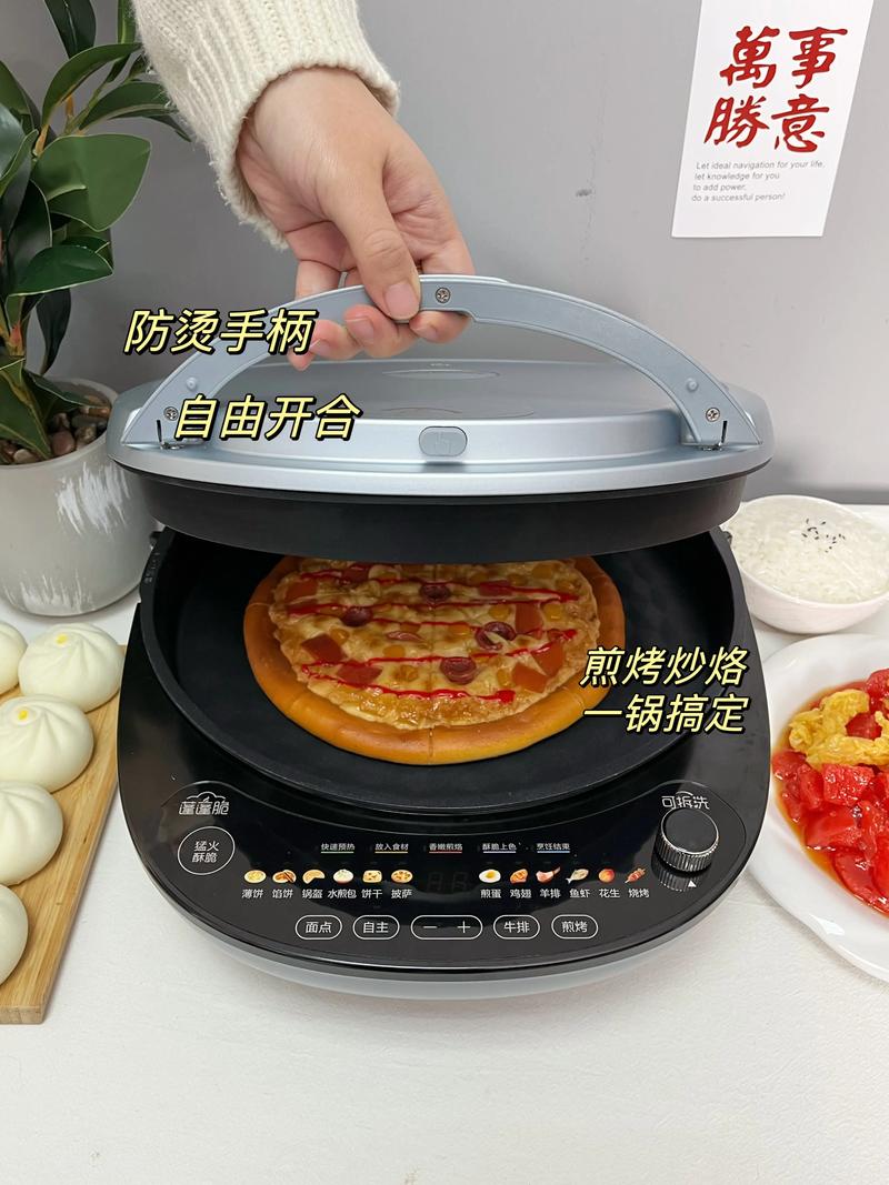 如果是在家庭中使用,一般建议选取尺寸适中的电饼铛,如直径28cm至30cm的型号,这样既能满足家庭日常烹饪需求,如烙饼、煎饺等,又不会过大占用厨房空间。此外,这类电饼铛通常还具备多功能,如烤、炒等,非常适合家庭使用。