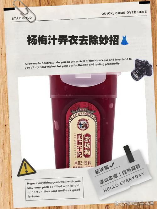 〖Four〗、想要去掉衣服上不小心染上的杨梅汁,可以尝试以下方法。方法一:使用食盐将有杨梅汁污渍的部分打湿,撒上适量食盐,轻轻揉搓,让食盐充分吸附污渍,之后用清水冲洗干净。方法二:使用白醋在温水中加入适量白醋,把染有杨梅汁的衣服浸泡其中一段时间,然后正常洗涤,能有效去除污渍。