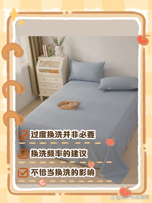 如果不定期更换,可能会导致皮肤病、过敏反应或哮喘等健康问题。特别是对于习惯裸睡、家人生病或未洗澡就睡觉的情况,更应提高换洗频率。关于床上用品的清洗,以下是推荐的时间表: 枕巾和枕套:建议每周清洗一次。