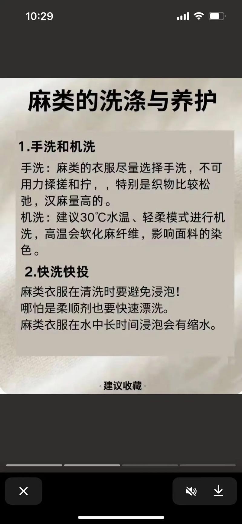 〖Two〗、苎麻衣服有可能会缩水。 纤维特性导致:苎麻是天然纤维素纤维,其分子结构在遇到水后,纤维会发生溶胀。水分子进入纤维内部,使纤维直径增大、长度缩短,从而导致衣服缩水。 加工处理影响:如果在苎麻面料生产过程中,没有经过良好的预缩处理,那么制成衣服后,一旦洗涤,就容易出现较为明显的缩水现象。