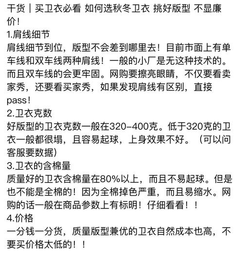〖Five〗、答案:在网络平台挑选质量好的卫衣,可从多方面着手。首先看品牌,知名品牌通常有更严格的生产标准和质量把控,比如耐克、阿迪达斯等运动品牌,其卫衣在面料、做工上都比较出色。其次关注面料成分,纯棉材质的卫衣穿着舒适、透气性好;聚酯纤维的相对挺括、不易变形。