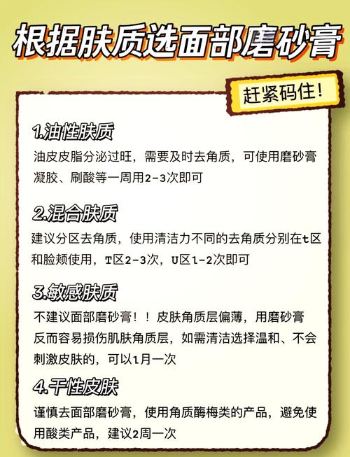 使用磨砂膏的正确方法如下: 清洁面部:先用温水将面部洗净,确保面部干净无尘。 调节用量:取适量磨砂膏于手心,一颗豆子大小即可。 均匀涂抹:将磨砂膏均匀涂抹于脸部,并轻轻按摩几分钟,确保膏体与肌肤充分接触。 避开敏感区:注意避开眼睛周围和唇部等敏感区域,以免刺激皮肤。