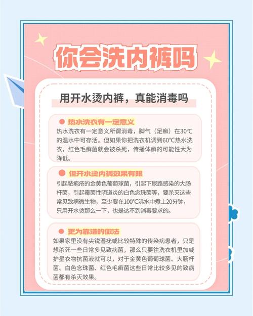 〖Three〗、度热水烫内裤能起到一定的杀菌作用,但少于30分钟的高温浸泡杀菌效果有限。具体说明如下:杀菌效果:开水烫内裤可以杀灭部分致病菌、病原微生物及病毒。但需要注意的是,仅通过短暂的开水烫洗可能无法完全杀灭所有细菌,特别是某些耐热性较强的细菌。