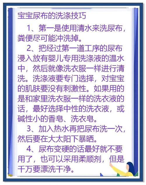 消毒液的浓度较高,直接使用可能会对婴儿的皮肤产生不良影响,甚至引发过敏反应。专用产品更安全:为了保障婴儿的健康,建议使用专用的婴儿洗尿布洗液进行清洗。这些产品通常温和无刺激性,更适合婴儿使用。其他消毒方法:除了使用专用洗液外,还可以选取其他消毒方法,如将尿布在阳光下暴晒,以达到消毒的效果。