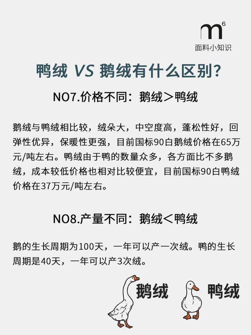 〖Two〗、鹅绒比鸭绒贵。解释如下:鹅绒与鸭绒相比,羽绒的质量有所不同,这导致了费用的差异。鹅绒的纤维较鸭绒更为细长、柔软、弹性更大且蓬松度高。这些特性使得鹅绒在保暖性能上表现更佳,特别是在制作羽绒服、羽绒被等保暖产品时,鹅绒成为了首选材料。因此,鹅绒的费用通常高于鸭绒。