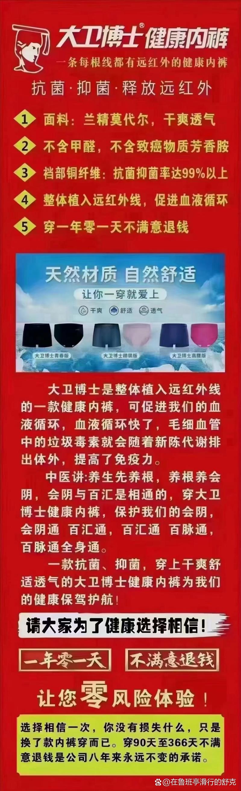 〖Three〗、大卫博士内裤其实就是一个微商品牌,宣传出里面注射了远红外线,可以起到抗菌、抑菌的功效,对身体会很高,但这种宣传大概率是噱头,本社内裤穿三个月左右就需要更换的,大卫博士内裤并不便宜,购买时需谨慎考虑。