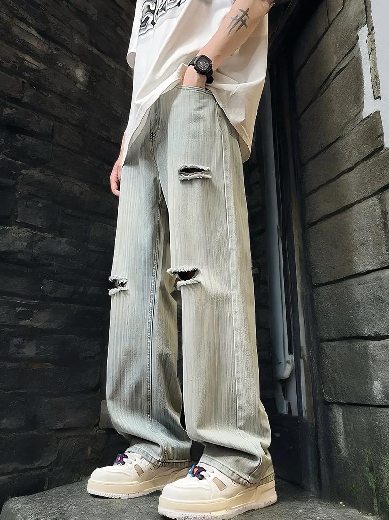 皮夹克:黑色或棕色的皮夹克与破洞牛仔裤搭配,展现出一种酷帅的摇滚风格,适合追求个性的男生。格子衬衫:复古的格子衬衫内搭白色T恤,外披破洞牛仔裤,再配上一双复古运动鞋,即可打造出复古潮流的造型。