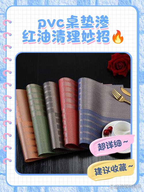 〖Two〗、PVC桌垫染色了,可以采取以下几种方法去除:使用湿纸巾擦拭:操作:直接用湿纸巾擦拭染色的地方,这是最简单直接的方法。使用草酸清洗:操作:可以使用草酸进行清洗,但需注意控制用量,避免损坏桌垫。使用酒精擦拭:操作:用布蘸取酒精后,擦拭染色的位置,可以有效去除染色。