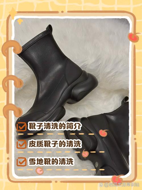 〖One〗、高筒皮革靴:用湿抹布擦拭表面的污渍,然后使用靴子专用的皮革清洁剂或肥皂水轻轻清洗。最后用干净的湿抹布擦干并晾干即可。 绒面或软面长靴:首先使用软毛刷轻轻刷掉靴子上的灰尘和污渍,然后使用绒面专用清洁剂或溶液轻轻擦拭绒面部分。最后用湿抹布将清洁剂彻底擦拭干净,并晾干。