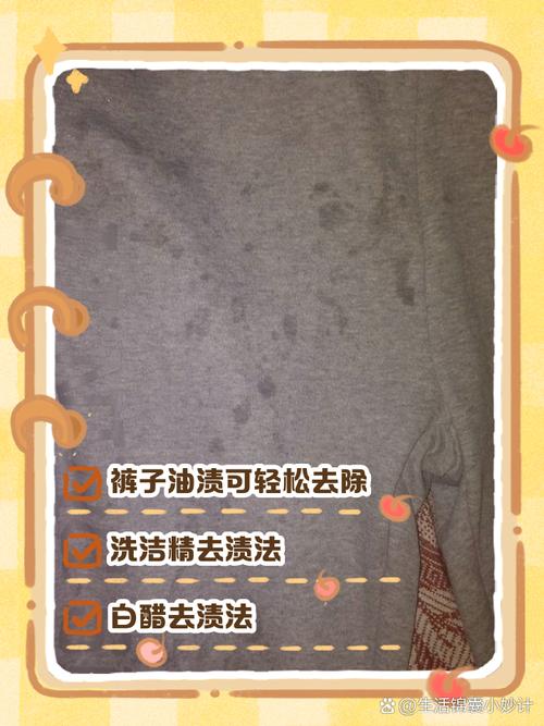 裤子上有油可以通过以下几种方法洗掉:使用牙膏清洗:步骤:在油渍处挤点牙膏,轻轻揉搓几次,然后用清水搓洗几下。效果:牙膏中的摩擦剂和清洁剂能有效去除油渍。使用温盐水和肥皂清洗:步骤:将裤子浸泡在温盐水中数分钟,然后用平常的肥皂揉搓油渍处,接着用清水冲洗干净。