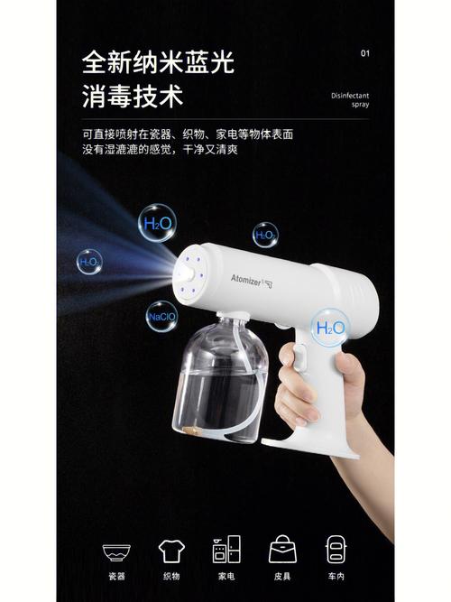 〖One〗、纳米蓝光雾化器可以放酒精。纳米蓝光喷雾消毒枪可以放酒精、消毒液,雾化很细。比较好不要使用酒精雾化,雾化后吸入肺部对身体不好,而且酒精易燃,容易发生意外。蓝光纳米喷雾器是一种将液体水通过仪器处理,以雾化纳米水分子形式喷出的仪器,因此也可叫“喷雾枪”。