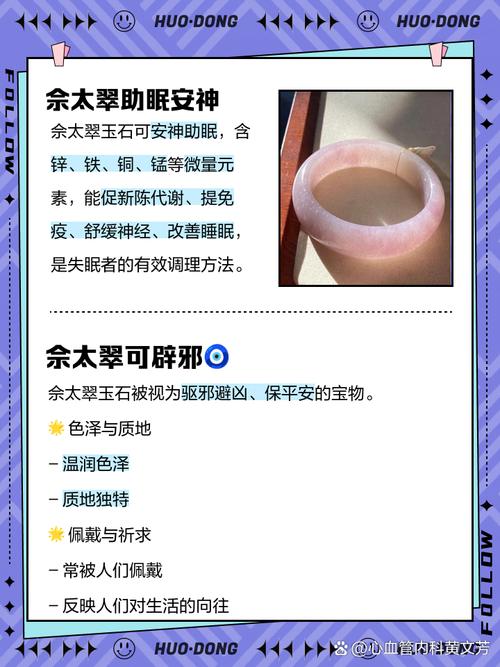 医生戴佘太翠玉的好处主要包括镇静安神、调节身体机能以及物理按摩效果,而坏处则涉及费用、过敏风险以及尺寸不适等问题。好处:镇静安神:佘太翠玉被认为具有镇静安神的功效,有助于缓解紧张情绪和改善睡眠质量。