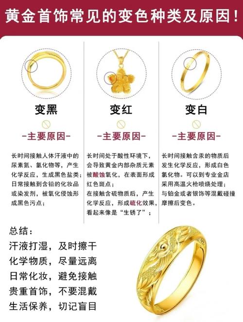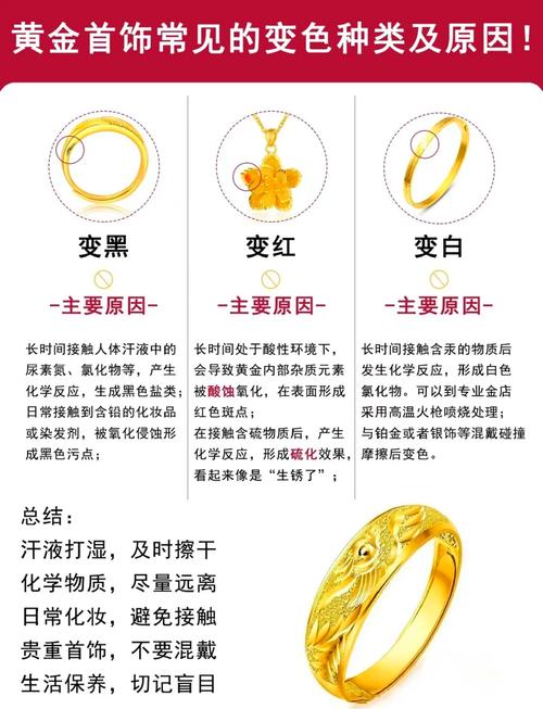 〖Six〗、黄金首饰变暗的原因 黄金首饰变暗可能是由于外界环境的改变。例如,首饰表面沾染了污渍和污垢,随着时间的推移,这些污垢会导致首饰颜色变暗。此外,如果首饰的含量不纯,含有铜、镍等元素,这些元素可能会发生氧化反应,导致首饰变暗。 黄金首饰变亮的原因 黄金首饰变亮同样与外界环境有关。