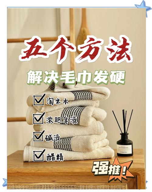 〖Six〗、长时间使用的毛巾发硬,可通过以下几种方法让其重新变软。方法一:使用白醋和盐,准备一盆温水,加入适量白醋和盐,搅拌均匀后将毛巾浸泡其中约半小时,之后用清水冲洗干净并晾干,可有效去除毛巾上的污垢和异味,使其恢复柔软。
