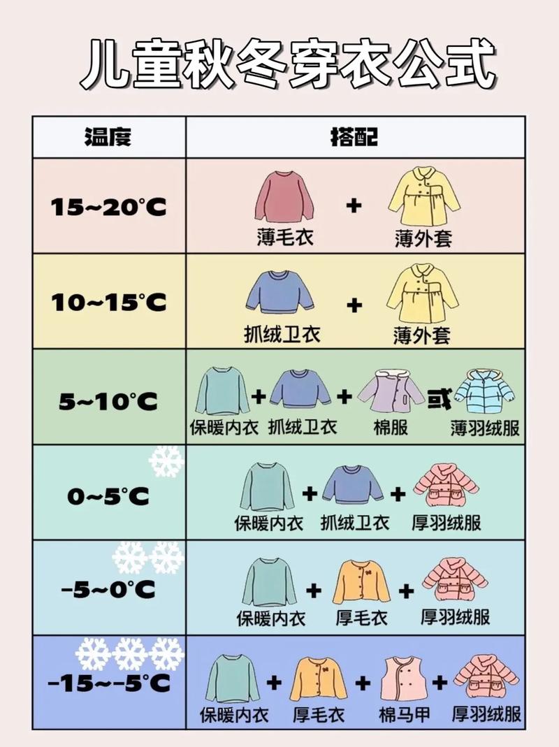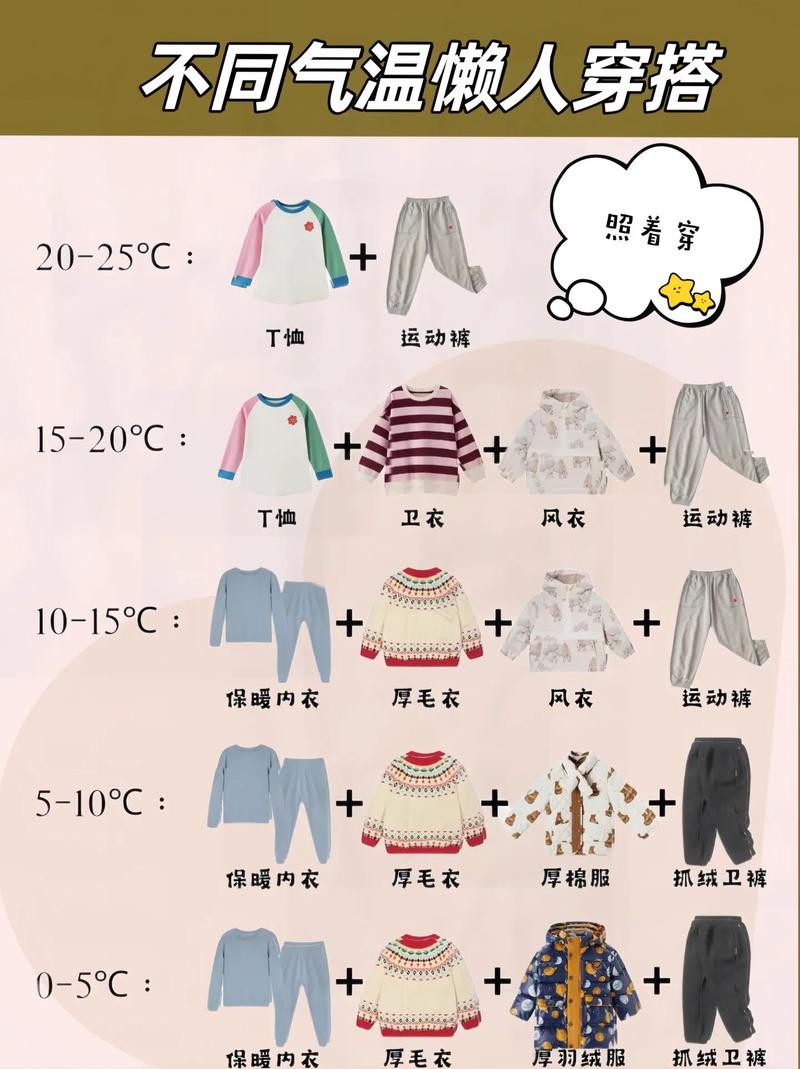 适宜的气温范围内,可以选取穿着轻便的保暖衣物,如羊毛衫或抓绒衣物,以及保暖内衣。 当气温降至1『5』摄氏度时,适合穿着厚实的羽绒服或棉衣以保持体温。 下半身可以选取保暖的棉裤或是羽绒裤,以防止体温通过腿部散失。