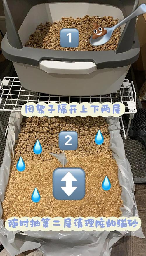 〖Five〗、在双层猫砂盆的底部铺上尿垫。在猫砂盆的上层倒入适量的松木猫砂。日常清理:当猫咪排便后,使用猫砂铲将猫咪的排泄物铲出。若猫砂减少,需适时添加新的松木猫砂。尿液处理:猫咪排尿后,松木猫砂会吸水变成粉末,并连同尿液一起掉进下层。主人需每两到三天更换一张新的尿垫。