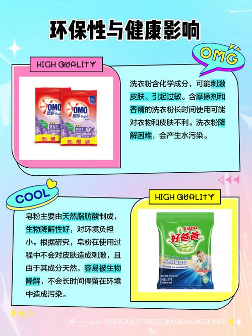 〖Four〗、肥皂粉和洗衣粉在成分、适用性及性质上的主要区别如下:成分 肥皂粉:主要由可再生油脂构成,这种天然成分使其性质温和。 洗衣粉:以石油提炼物为基本成分,并包含化学摩擦剂,成分相对更为复杂。适用性 肥皂粉:因其温和的特性,特别适合清洗敏感肌肤的衣物,如贴身衣物和婴儿衣服。