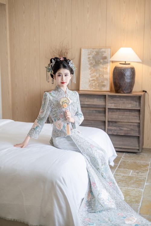 〖Four〗、试穿与调整:在挑选秀禾服时,一定要试穿,看看是否合身,是否舒适。如果发现某些部位不合适,可以请裁缝进行调整,以达到最佳的穿着效果。