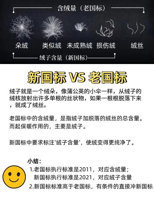 首先,我们来了解一下新旧国标标准的区别。新国标标准不仅对羽绒的品质提出了更高的要求,还对填充物和面料等方面进行了规范。比如,新国标要求羽绒的填充量必须达到90%,而旧国标则只需达到80%。此外,新国标还对羽绒品质进行了详细分类,分为A级、AA级和AAA级,其中AAA级为比较高级别。