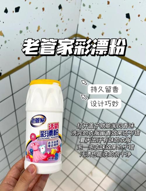 彩漂粉的正确使用方法如下:洗衣使用:用量:每10kg干衣物加入3050g彩漂粉。水温:控制在3050℃之间。使用方法:可以与洗衣粉或洗衣液一起加入洗衣机中,正常洗涤1020分钟。去渍除斑:浓度:根据污渍情况,用4060℃温水,按12%的浓度调配,即1kg水中加入1020g彩漂粉。