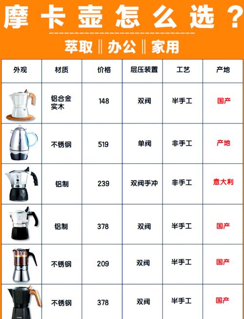 综合建议 口味偏好: 如果您喜欢浓郁且有一定强度的咖啡,摩卡壶是不错的选取;若追求细腻多变的风味,手冲壶更适合您;而喜欢醇厚口感的,则可以选取法压壶。使用便利性: 对于初学者或是追求方便快捷的用户,法压壶和摩卡壶较为合适。手冲壶虽然提供了更多控制,但也需要更多的技巧和耐心。