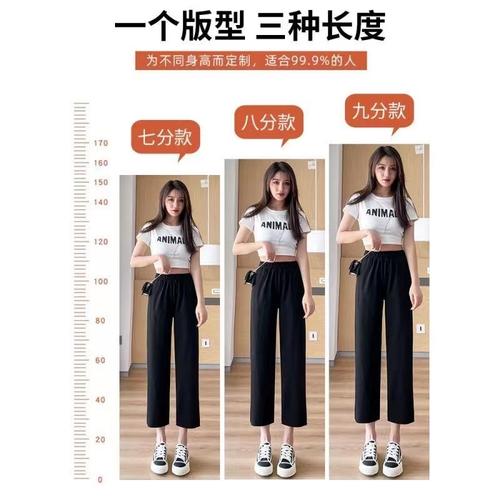 八分裤:常见的八分裤款式包括直筒裤和阔腿裤,深受女性喜爱,适合各种身材类型。 九分裤:九分裤仅展示小腿的一小部分,市面上有多种款式,包括直筒裤、小脚裤等,适合的人群广泛。需要注意的是,裤子的选取不仅要考虑身材类型,还要考虑个人搭配的技巧。
