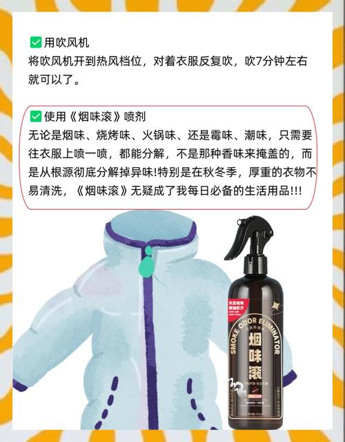 衣服上的火锅味可以通过以下几种技巧清除:使用保鲜袋和吹风机:步骤:在保鲜袋底部剪一个5公分左右的口子,把衣服装进保鲜袋。将吹风机调到暖风档,风筒口塞进保鲜袋,握住袋口吹45分钟。效果:浓郁的火锅味基本上可以全部去除。