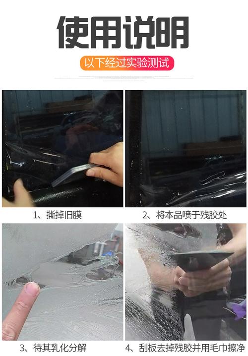 步骤:用蒸汽挂烫机对玻璃贴膜处进行喷射,直到胶粘剂熔化。此时,贴膜会像玻璃纸一样与玻璃分离开来。后续处理:使用除胶剂清理剩下的胶痕。使用肥皂水与洗涤液混合物:准备溶液:将肥皂水与洗涤液混合在一起。涂抹与等待:用涤棉将混合溶液涂在车窗上,然后铺上报纸等待一小时。