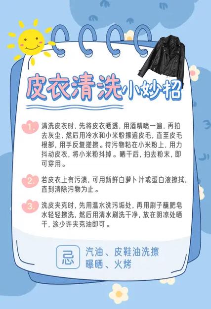 洗衣机在清洗过程中可能导致皮衣清洗不均,部分区域未能清洗干净。为了保持皮衣的良好状态,建议采用以下清洁方法:干抹布或刷子处理:对于光面皮衣的灰尘和油污,可以使用干的抹布或刷子进行清洁。专业护理:如果皮衣污渍难以清除,建议交给专业的皮衣护理店进行处理,以确保皮衣得到妥善的清洁和保养。