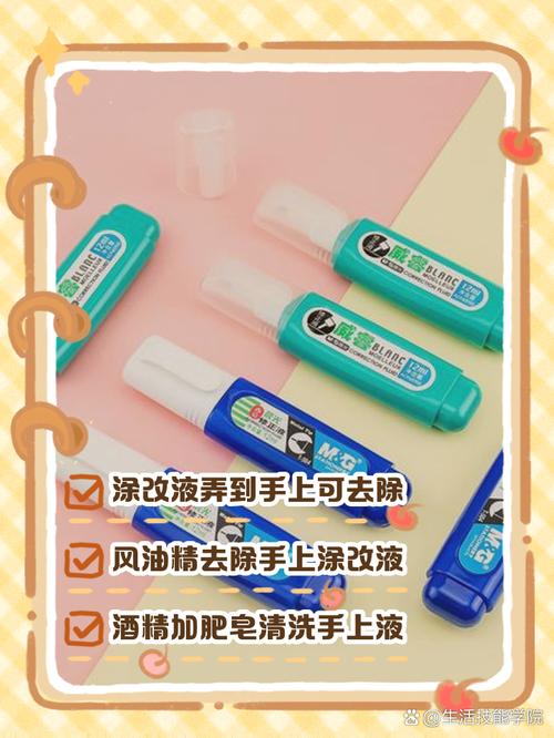 涂改液弄到手上,可以通过以下几种方法快速洗掉:使用风油精:步骤:将风油精涂抹在手上沾有涂改液的地方,确保完全浸湿。操作:用纸巾轻轻擦拭,随后用手揉搓,直至涂改液被完全去除。使用橘子或橙子皮:步骤:挤出少许橘子或橙子的汁液,滴在沾有涂改液的手上。等待:让汁液在涂改液上停留约2分钟。